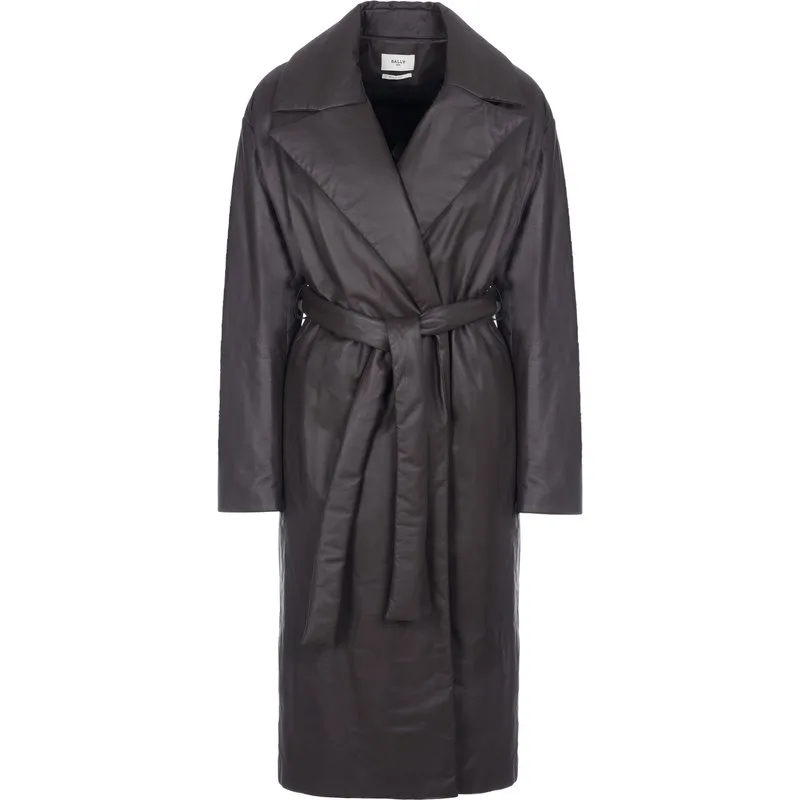 100% lamsleer; Bally jas; Model: WLE037PE001 U804; Hoogwaardig vervaardigd; 100% lamsleer; Gemaakt in Italië; Oplopende reverskraag; Twee zijzakken; Ceintuur om te strikken