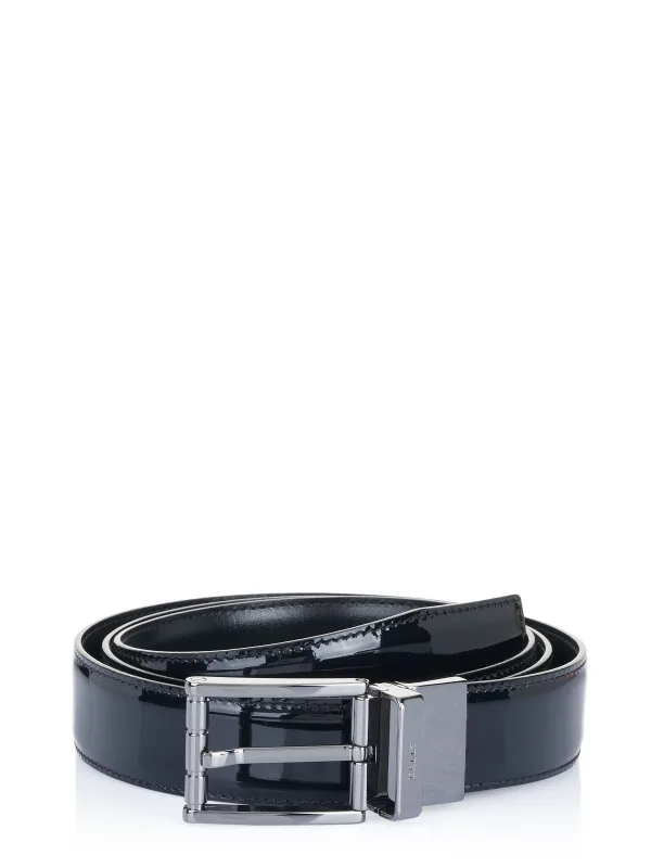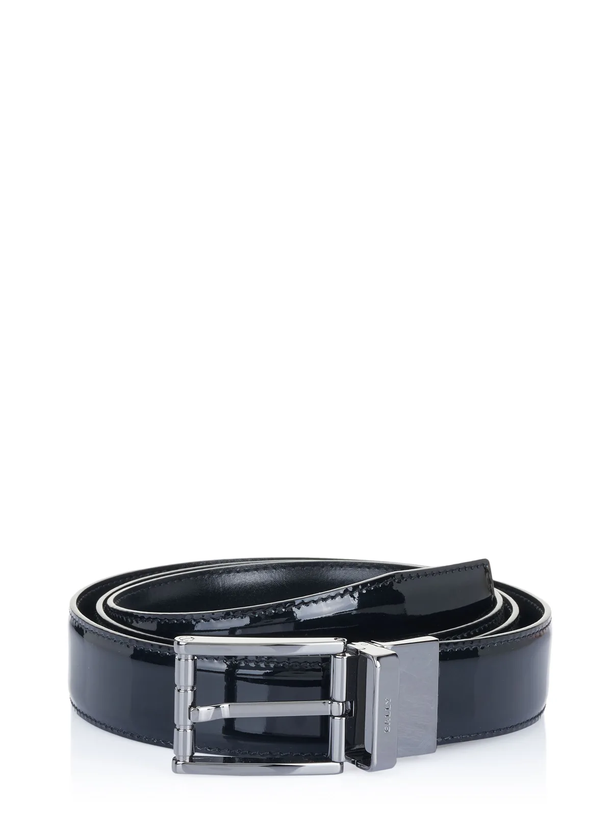 100% lakleer; Bally omkeerbare riem; Model: 59167725580 F590; Hoogwaardige afwerking; Zilverkleurige gesp; Breedte: 3 cm; Individueel in te korten; Bally-logodetails
