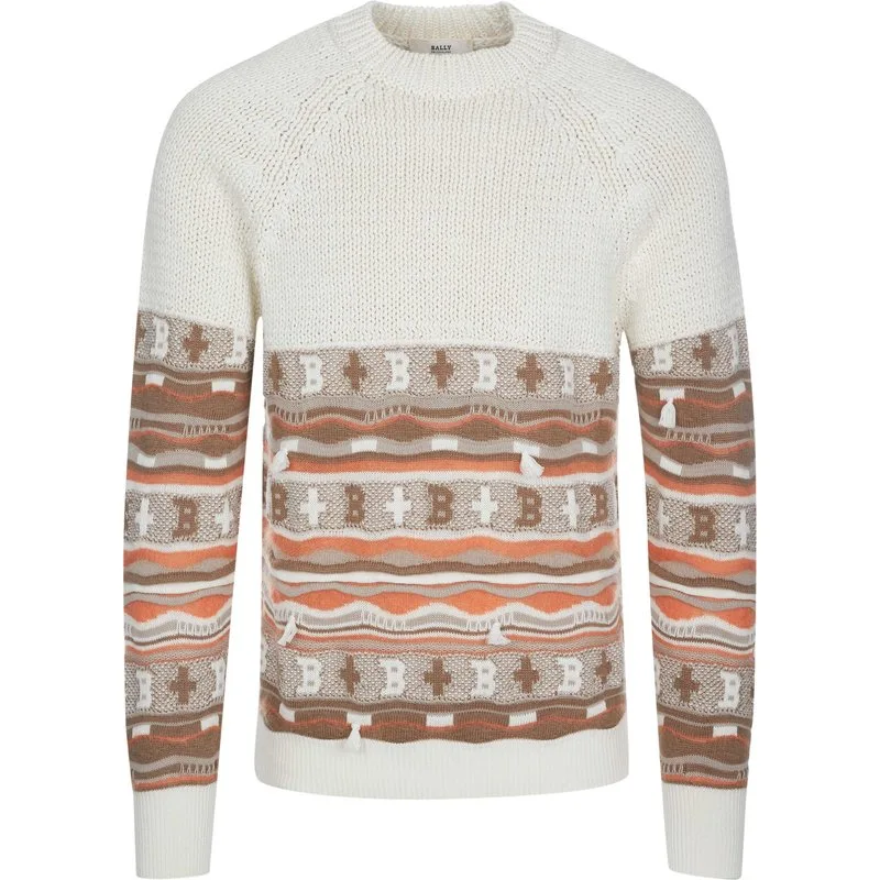 100% katoen; Bally-trui; Model: 59789600319 F108; Hoogwaardige afwerking; ronde nek; zoom; Gebreid; Bally-logodetails