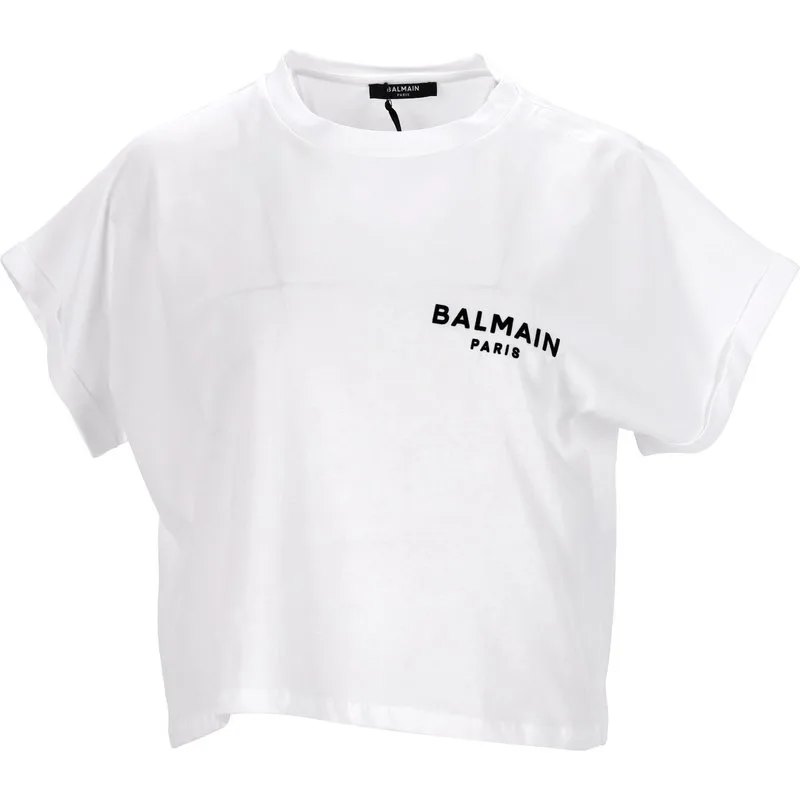 Katoenen crop top van Balmain met kleine logoprint op de borst. 100% katoen. Land van herkomst: Portugal.