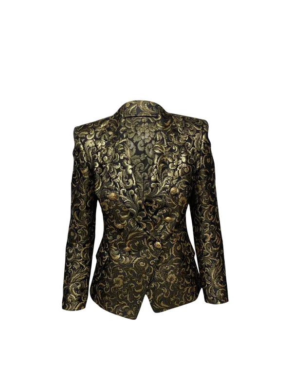 Balmain Metalen Brokaat Blazer in Gouden Acetaat