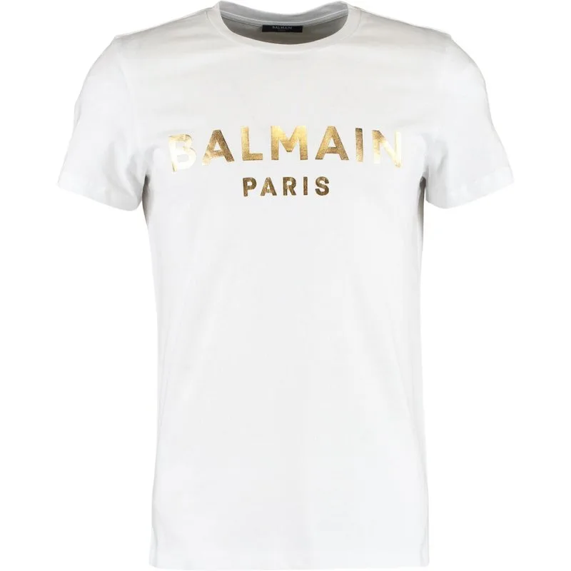 Balmain Paris Gold Branded Logo White T-Shirt