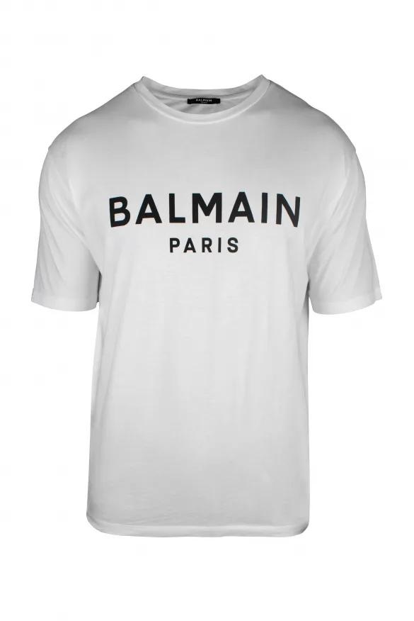 Wit Balmain T-shirt.Zwart logo gedrukt op de voorkant.Korte mouwen.100% katoen.
