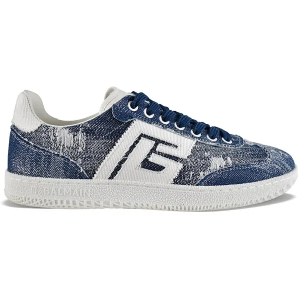 Swan sneakers Balmain in blauw denim.Gewassen effect.Wit logo op de zijkanten van de schoen. Witte stoffen teller.Marineblauwe vetersluiting.Platte witte rubberen zool.Made in Italy.