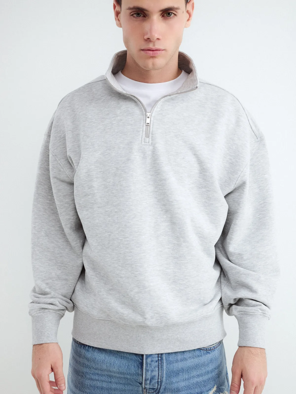 Design: Geribd ceintuurtje, Overcut schouder, Halve rits; Type sluiting: Ritssluiting; Materiaal: Sweatstof; Halstype: Schipperskraag; Motief: Mélange; Extra's: Op staal naden, Voelt zacht aan; Pasvorm: Losse pasvorm; Armlengte: Lange mouw