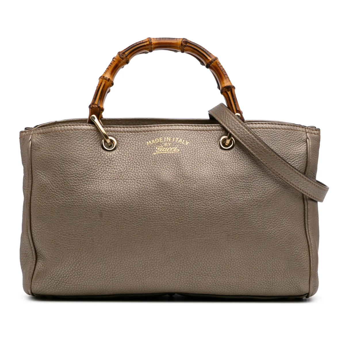 Draag moeiteloos, reis stijlvol, bezit een klassieker. Deze vintage Gucci Bamboo Shopper biedt tijdloze elegantie en praktisch design voor de moderne individu. Gemaakt in Italië, biedt de kenmerkende bamboe handgreep en de verstelbare schouderriem veelzijdigheid in het dragen. Het leren lichaam zorgt voor duurzaamheid, terwijl het ruime interieur het perfect maakt voor dagelijkse benodigdheden. Geniet van de combinatie van iconische stijl en functioneel design dat naadloos elk outfit aanvult. Vlekkenreiniging voor blijvende schoonheid. Afmetingen: 21 x 33 x 14,5 cm Conditiebeoordeling: B+ Informatie over de conditie: Achterzijde Exterieur geplooid. Onderzijde Exterieur geplooid. Slot gekrast. Hoeken Exterieur versleten. Voorkant Exterieur geplooid. Handgreep Exterieur gebroken geplooid versleten. Binnenzak bevlekt met andere. Binnenvoering bevlekt met andere. Praktische bevestiging gekrast. Zijkant Exterieur geplooid versleten. Bovenkant Exterieur versleten. Rits gekrast.