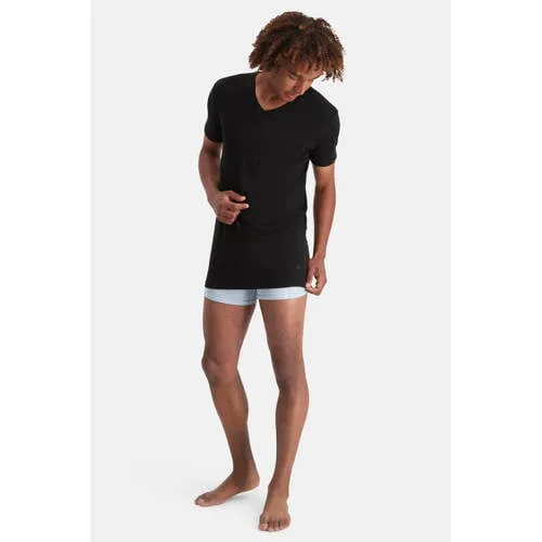Set van 2 heren T-shirts Velo met bamboe van Bamboo Basics. Dit extra lange ondershirt is 5 cm langer dan een regulier Bamboo Basics T-shirt. Dit model heeft korte mouwen en een V-hals.