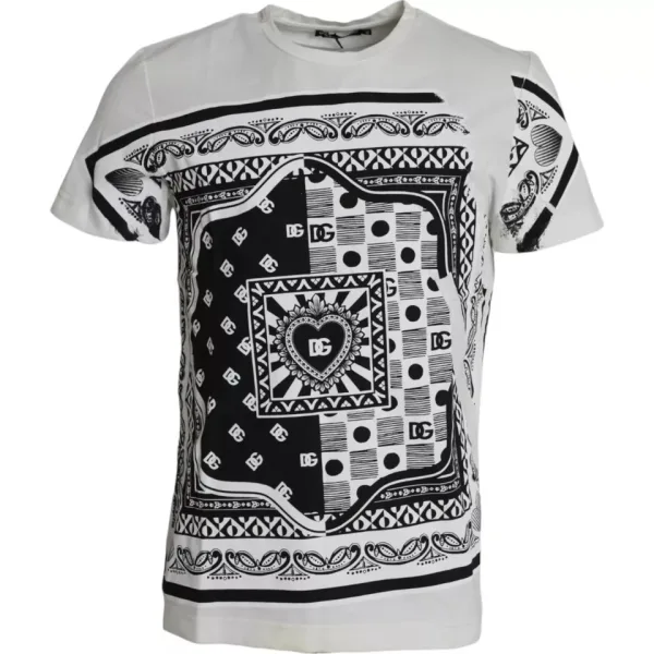 Verhoog je stijl, maak een statement. Dit Dolce & Gabbana T-shirt biedt moeiteloze coolness en comfort gedurende de hele dag. Gemaakt van zachte, ademende katoen, heeft deze tee een unieke zwart-wit bandana print die persoonlijkheid toevoegt aan je dagelijkse look. De klassieke ronde hals en korte mouwen zorgen voor een losse pasvorm. Geniet van onderhoudsvriendelijke constructie, perfect voor een zorgeloos leven. Combineer het met jeans voor een casual vibe of kleed het op met chinos voor een avondje uit. Machinewasbaar voor ultiem gemak.