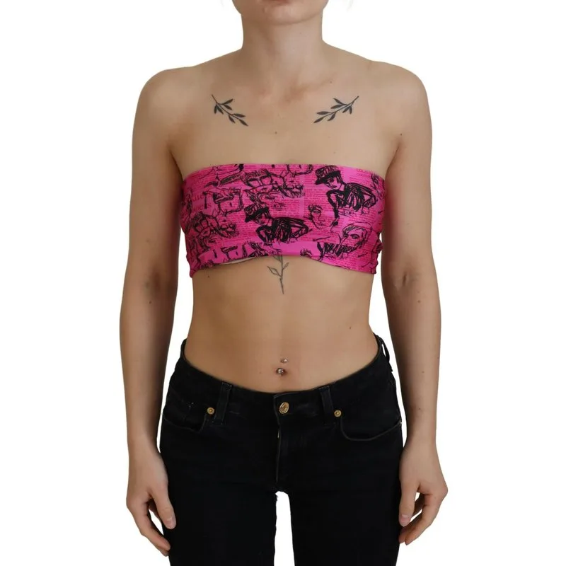 Druk af, boei, transformeer. Deze tube top van John Galliano is een statementstuk dat hoge mode met artistieke flair mengt. Gemaakt van weelderige zijde, toont het een opvallende roze basis versierd met een zwart-wit collage geïnspireerd op kranten, vol gezichten en tekeningen. De chique strapless silhoette biedt moderne elegantie en vrijheid. De zachte, luxueuze zijde zorgt voor uitzonderlijk comfort op je huid. Moeiteloos veelzijdig, deze top schakelt naadloos over, waardoor hij perfect is om elke casual gelegenheid te verfraaien met een vleugje avant-garde stijl.