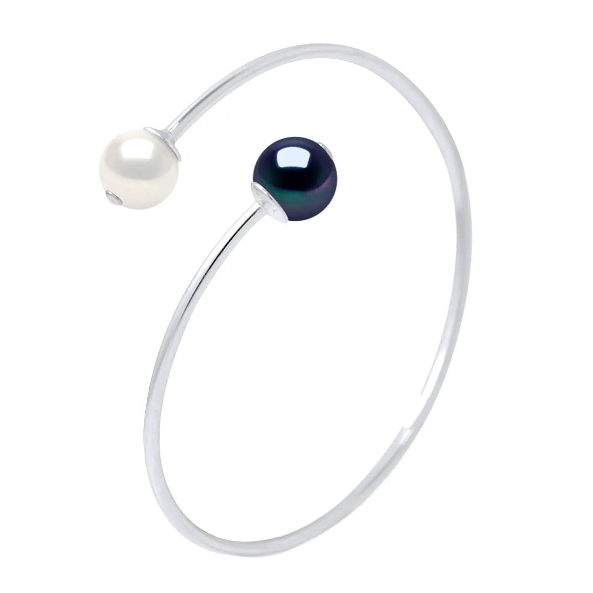 Armband You & Me - 2 Real Water gekweekte parels Sweet Round 9-10 mm - Kwaliteit AAAA + - + COLORI ZWART TAHITIAN NATURAL WHITE - Rush Rigid - 925 duizendste rhodium - Past pols 14 tot 18 cm in omtrek - Garantie 2 jaar op fabricagefouten - wordt geleverd in een zaak met een certificaat van echtheid en een Internationale Garantie - Al onze juwelen zijn gemaakt in Frankrijk.