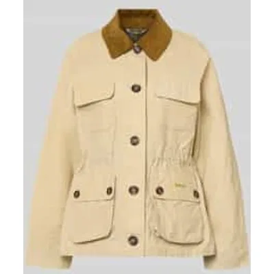 Functioneel damesjack van Barbour;Model 'Croton';Look: effen;Pasvorm: Regular fit;Kraagmodel: Platte kraag;Sluiting: enkele knoopsluiting;Applicatie: Labelstitching;Functie: waterafstotend;Mouwvorm: lange mouwen;Materiaal: puur katoen