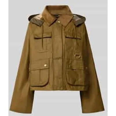 Functioneel damesjack van Barbour;Model 'Liza';Look: effen;Pasvorm: Regular fit ;Kraagmodel: afneembare capuchon, opstaande kraag;Sluiting: blinde drukknoopsluiting met ritssluiting;Applicatie: Labelopschrift, metallic accenten;Mouwvorm: lange mouwen;Mouwboord: met omslag;Bijzondere kenmerken: gewaxt;Zakken: opgestikte zijzak, steekzakken opzij, opgestikte borstzakken, binnenzak;Materiaal: puur katoen