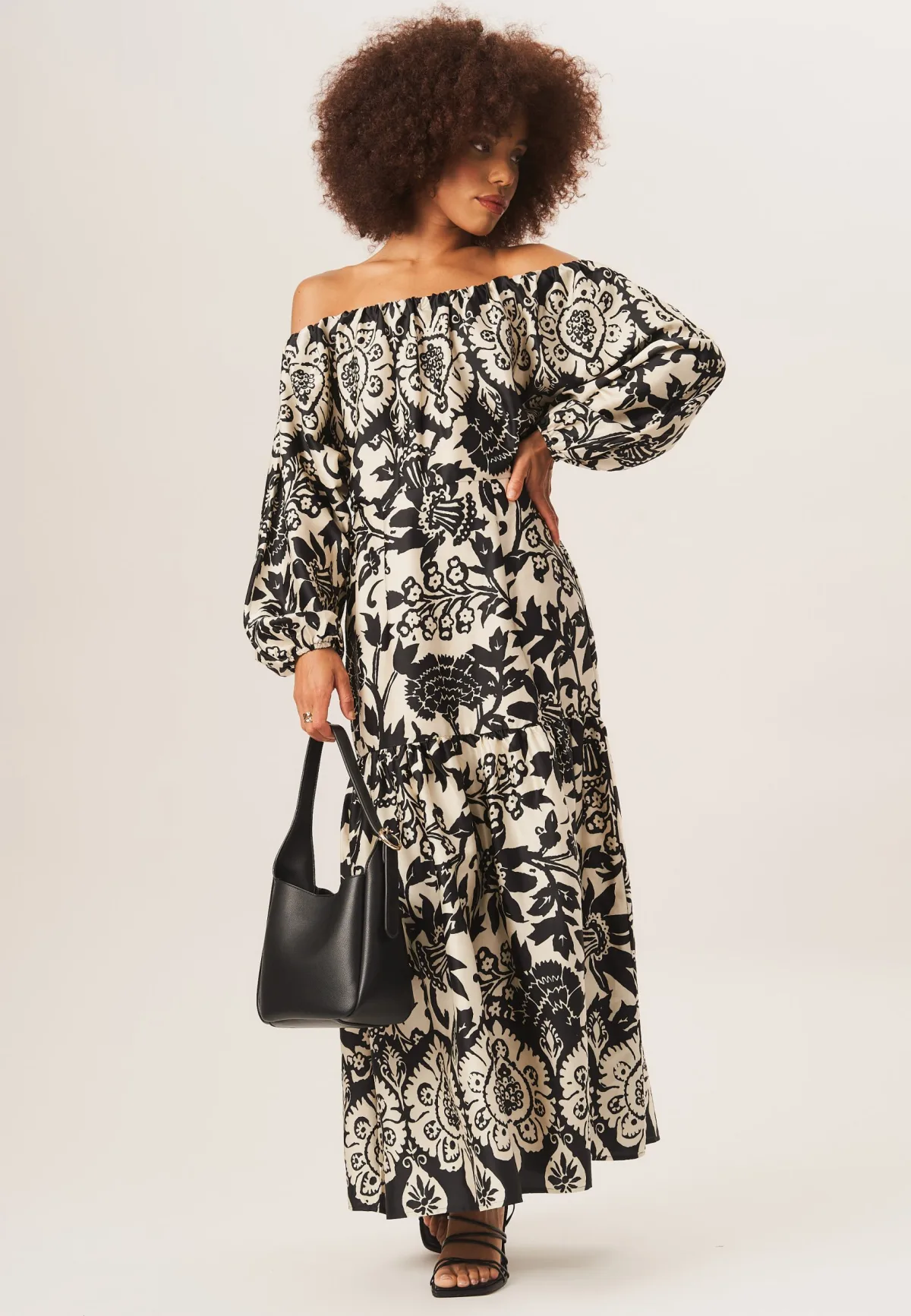Bardot maxi-jurk met mono-randprint
