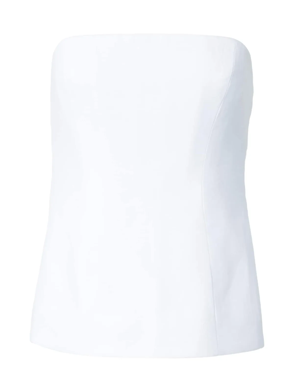 Design: Gevoerde zoom/rand, Rechte zoom, Rug rits; Materiaal: Linnen; Halstype: Carmen hals; Motief: Effen; Soort bandjes: Bandeau; Extra's: Op staal naden, Lichte stof; Pasvorm: Normale pasvorm; Armlengte: Mouwloos; Lengte: Normale lengte