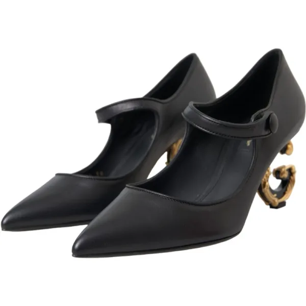 Stap naar buiten, sta rechtop en draai hoofden. Deze Dolce & Gabbana pumps bieden ongeëvenaarde luxe en stijl. Gemaakt van zacht zwart leer, beloven ze elke outfit te verheffen. De verfijnde puntige neus en de opvallende gespsluiting stralen tijdloze elegantie uit. Ervaar de stabiliteit dicht bij de grond met de gebeeldhouwde stilettohak, die het kenmerkende DG-logo toont. Duurzame, onderhoudsvriendelijke constructie zorgt voor blijvende schoonheid. Perfect voor avondgelegenheden of om een vleugje haute couture aan je dagelijkse look toe te voegen.