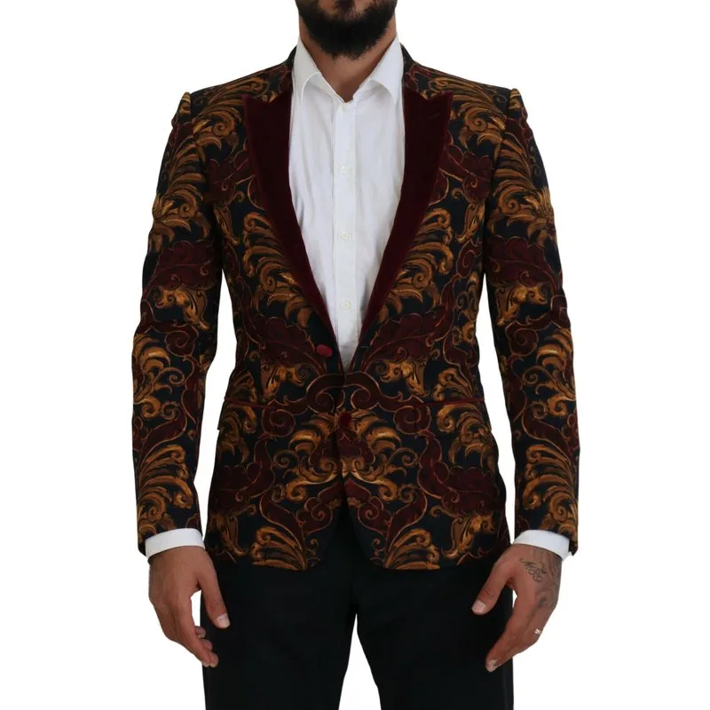 Trek de aandacht, straal zelfvertrouwen uit en maak een statement. Dit Dolce & Gabbana fluwelen blazer zorgt ervoor dat je de best geklede man in de kamer bent. Het rijke fluweel en de barok geïnspireerde print bieden ongeëvenaarde luxe en stijl. De gelapte revers en de sluiting met één knoop creëren een tijdloze silhouet. De fluwelen kraag voegt een vleugje weelde toe. Duurzame, onderhoudsarme constructie zorgt voor langdurigheid. Perfect voor formele evenementen of om een vleugje flair toe te voegen aan je avondkleding, dit blazer tilt elke outfit naar een hoger niveau. Een ware investering in blijvende stijl.