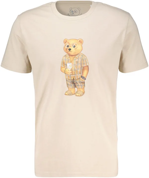 Dit T-shirt combineert comfort met een speelse touch. Gemaakt van zachte stof, heeft het een ronde, geribde hals en korte mouwen. De blikvanger is de opvallende beerprint op de voorzijde, die een unieke en casual uitstraling geeft. Perfect voor een ontspannen dagje uit of een informele gelegenheid.