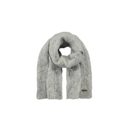 Meisjes sjaal Mairley van Barts in de kleur grijs. De sjaal heeft een open gewerkt patroon en is gemaakt van acryl.