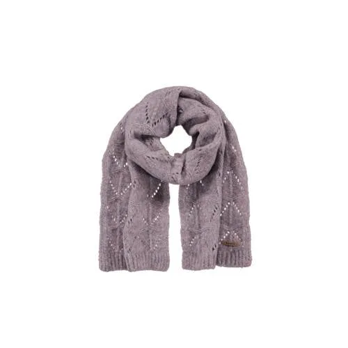 Meisjes sjaal Mairley van Barts in de kleur paars. De sjaal heeft een open gewerkt patroon en is gemaakt van acryl.