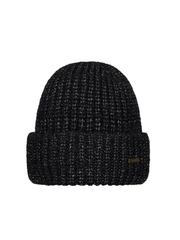 De grote gebreide muts voor dames, model Arugama Beanie van Barts, verenigt tijdloze elegantie met aangenaam draagcomfort. Het fijne ribpatroon en de zachte glans geven het een subtiele, stijlvolle touch, terwijl de omgeslagen hoogte van 9 cm en het label-detail het ontwerp compleet maken. In één maat is het een modieuze metgezel voor frisse dagen.