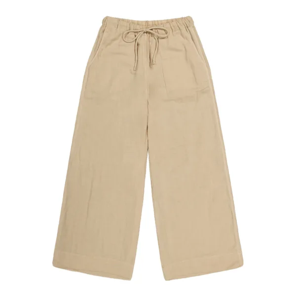 De Wollam Zachte Loose Fit Strandbroek is de perfecte keuze voor een relaxte en comfortabele stranddag. Gemaakt van 100% katoen, biedt deze broek een ademende en lichte feel, ideaal voor warme zomerdagen. De dubbellaagse stof maakt de broek extra zacht en luchtig, waardoor hij perfect is om over je zwemkleding te dragen of als comfortabele broek voor een dag op het strand. Verkrijgbaar in maat S/M en maat M/L, biedt deze broek een ruime pasvorm. De lengte van de zijnaad voor maat S/M is 100 cm en voor maat M/L is dit 102 cm (exclusief tailleband).