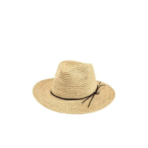 Dameshoed van Barts;Zuiver stro;Brede omlopende rand;Model 'CELERY';Strikdetail;Labeldetail;In grootte verstelbaar met trekkoord aan de binnenkant