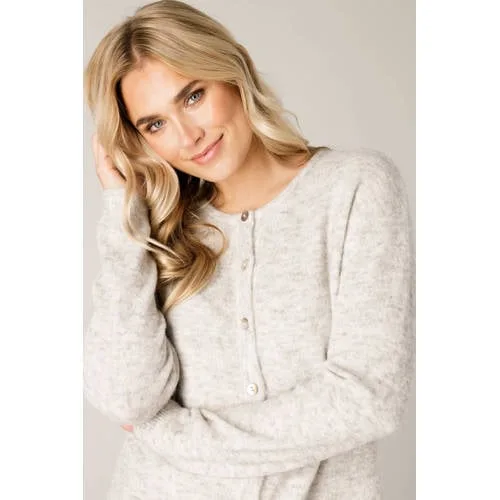 Base Level cardigan grijs melange fijn gebreid Prijzen