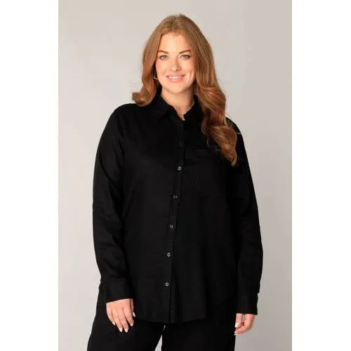 Base Level Curvy blouse met linnen zwart