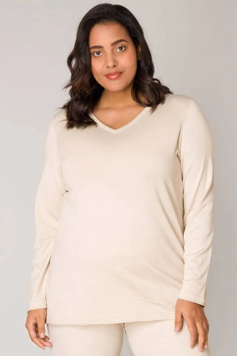 Deze trui voor dames van Base Level Curvy by Yesta is gemaakt van een viscosemix. Het model heeft een V-hals en lange mouwen.details van deze trui:• stijlnaam: Anine• fijn gebreid