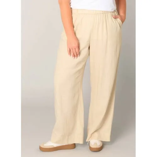 Deze wide leg fit broek voor dames van Base Level Curvy is gemaakt van linnen (natuurlijk duurzamer). Het model heeft een hoge taille en heeft een elastische tailleband.