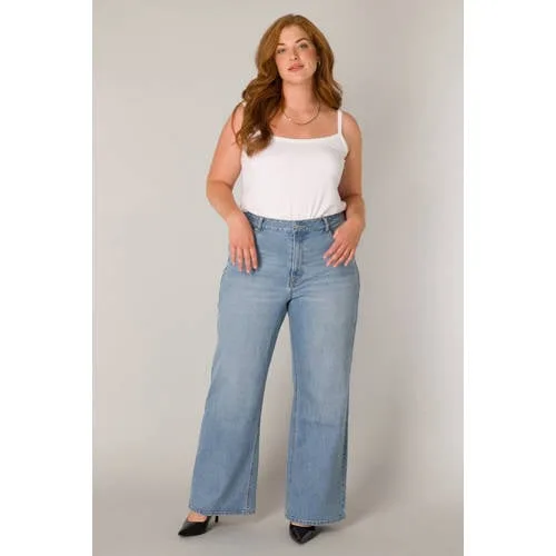 Base Level Curvy highwaist wide leg jeans light blue denim