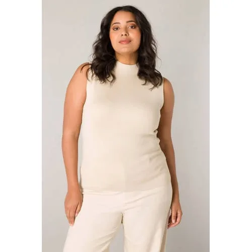 Deze top voor dames van Base Level Curvy is gemaakt van een viscosemix. Het mouwloze model heeft een col.