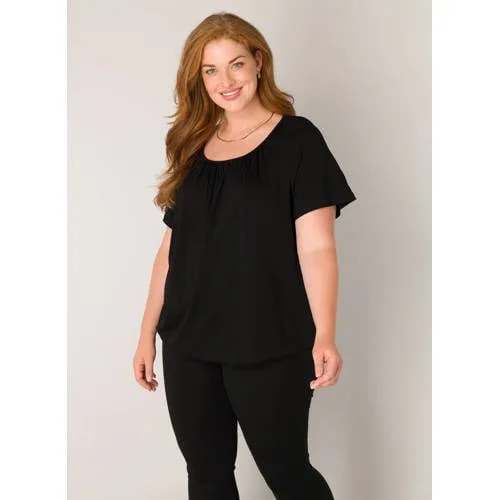 Deze top voor dames van Base Level Curvy by Yesta is gemaakt van een viscosemix. Het model heeft een ronde hals en korte mouwen.details van deze top:stijlnaam: Yoniplooienelastische boord