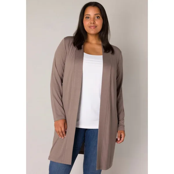 Dit vest voor dames van Base Level Curvy is gemaakt van een viscosemix. Het model heeft een openvallende hals en lange mouwen.