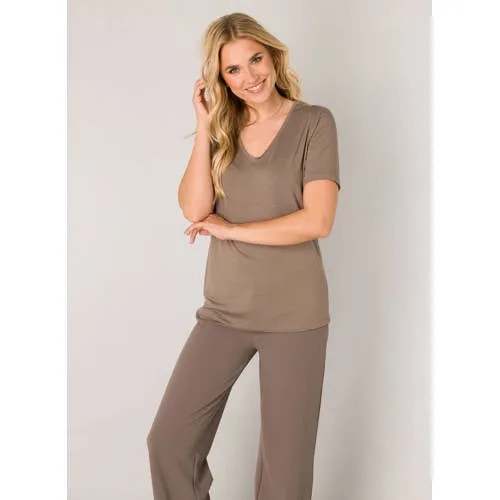 Deze top voor dames van Base Level is gemaakt van jersey. Het model heeft een V-hals en korte mouwen.