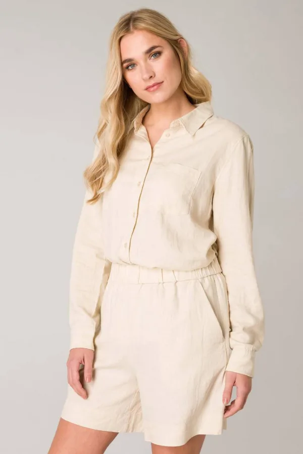Base Level loose fit short Yarda met linnen beige Prijzen