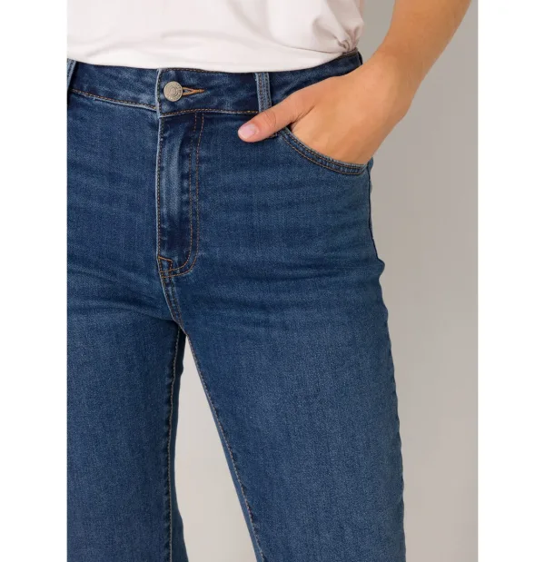 De Arin jeans voor dames van Base Level is een straight leg model gemaakt van stretchdenim. Deze jeans in medium blue denim heeft een regular waist en een rits- en knoopsluiting. De 5-pocket stijl biedt handige opbergruimte.