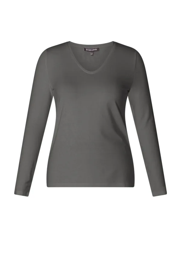 Deze top van Base Level heeft rechte mouwen en een V-hals. De top is fijn gebreid en gemaakt van viscose. Je draagt deze makkelijk bij veel outfits door het tijdloze karakter.