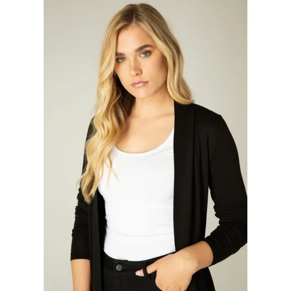Dit vest voor dames van Base Level by Yest is gemaakt van een viscosemix. Het model heeft een openvallende hals en lange mouwen.details van vest:• stijlnaam: Yayla