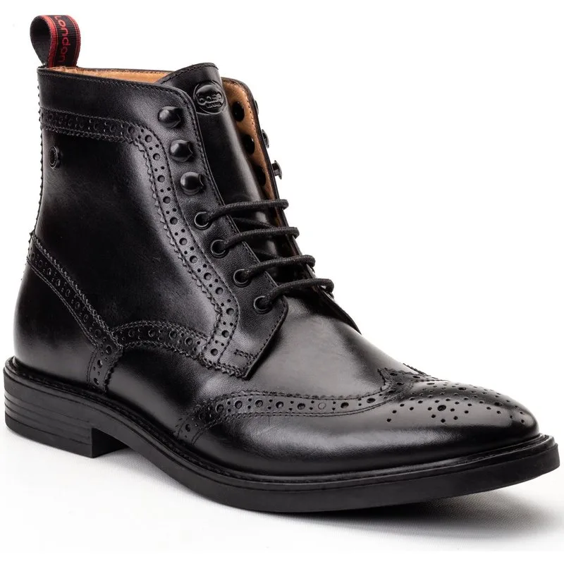 Klassieke Britse stijl ontmoet modern comfort. De Bristol Brogue Boot van Base London heeft kwaliteitsleren bovenkant, een comfortabele Ortholite-binnenzool en een gripvaste rubberen zool. Met skihaken en een nylon aantreklus is het gemakkelijk te dragen en moeilijk te verslaan.