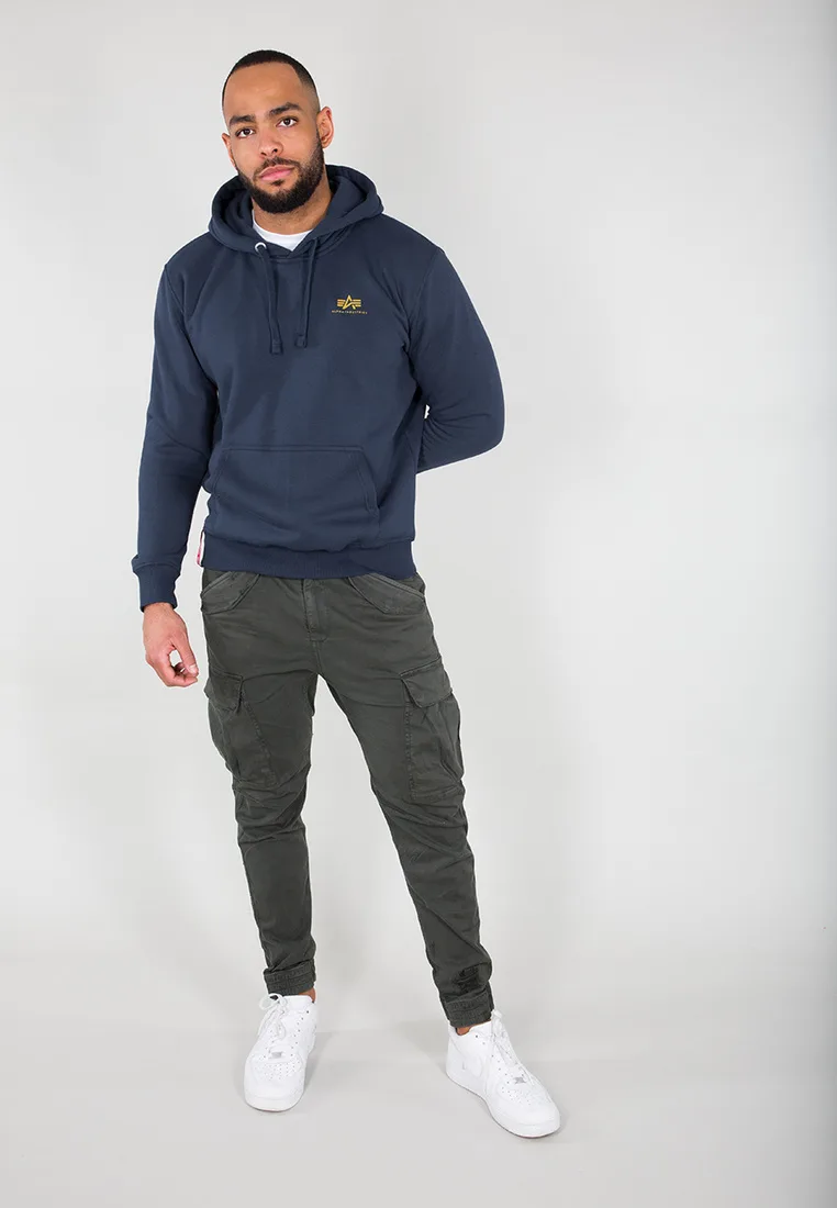 De Basic Hoodie Small Logo van Alpha Industries biedt stijl en comfort in een regular fit. Gemaakt van katoen en polyester, zorgt de gebrushte fleecevoering aan de binnenkant voor warmte. Een subtiel plastisol-logo op de borst geeft een moderne touch. Geribde boorden, een trekkoord aan de capuchon en een kangoeroezak maken het design compleet. Het RBF Loop-label aan de zoom en het gewicht van 330 g/m² staan garant voor duurzaamheid.