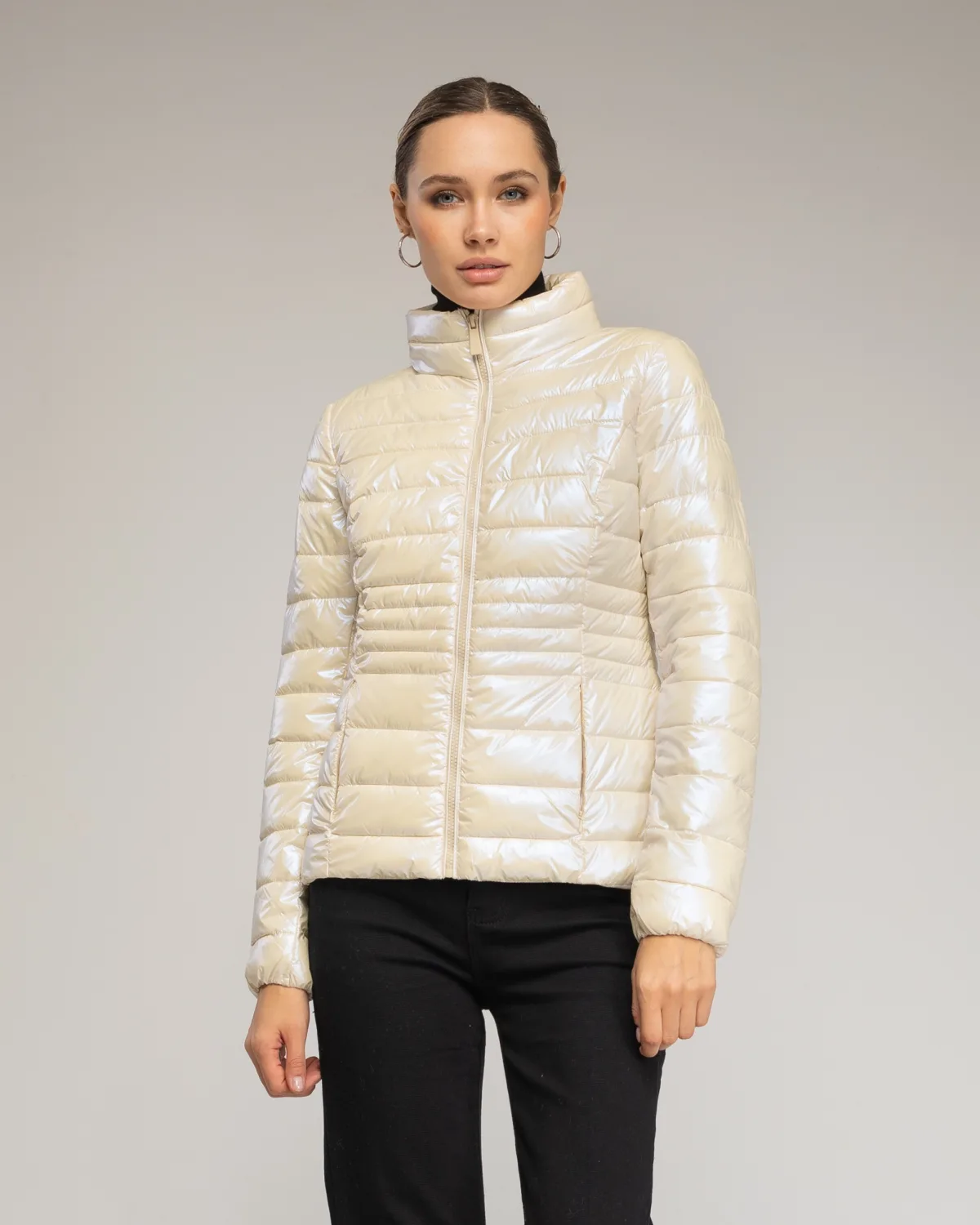 Anorack basíço metalizado con cierre cremallera y cuello mao