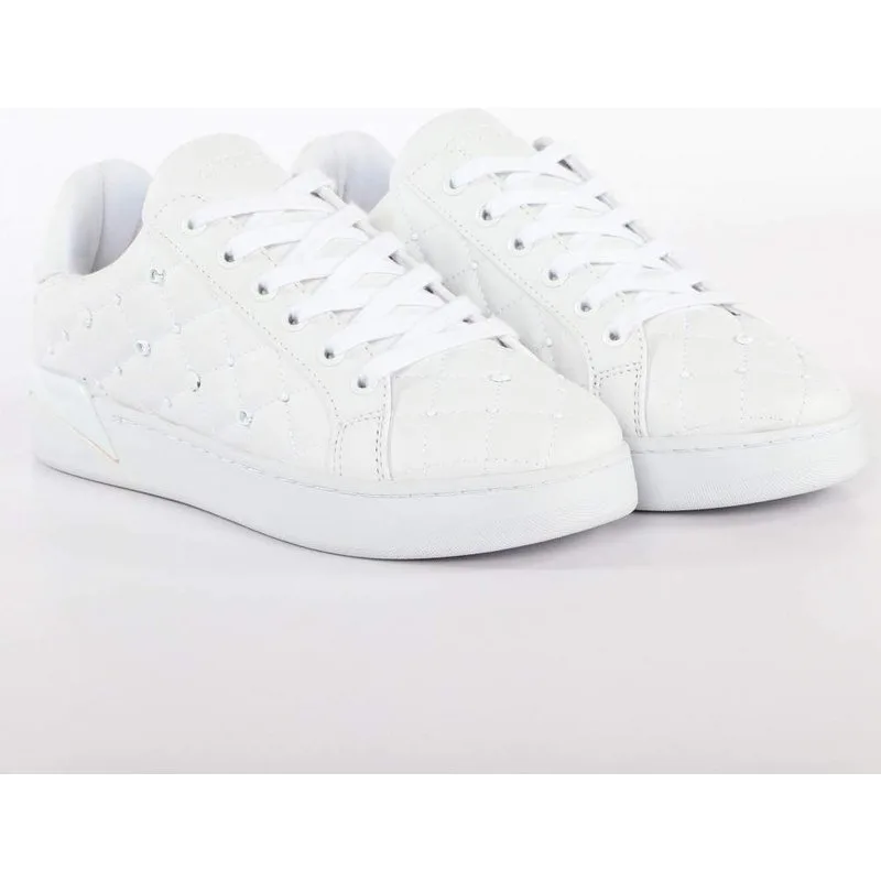 Guess Reea logo sneakers voor dames, wit leer. Authentieke urban schoenen van Guess – streetwear/sportswear design van Guess – perfect voor dagelijks gebruik – deze witte Guess sneakers passen perfect bij je garderobe – comfortabel leren materiaal – klassieke veters – Reea logo applicatie – bovenwerk van textiel.