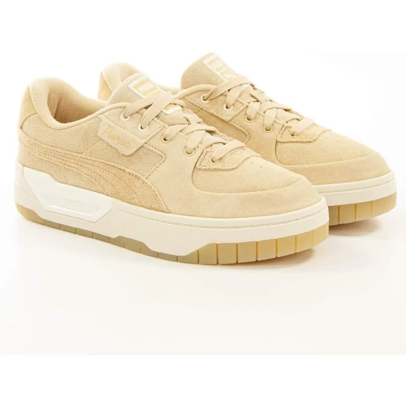 Puma Cali Dream First Sense WNS beige suède sneakers voor dames. Authentieke Puma-schoen - streetwear/sportswear design van Puma - Puma voor modebewuste vrouwen, perfect voor dagelijks gebruik - beige Puma sneakers passen perfect bij de rest van je garderobe - comfortabel suède materiaal - klassieke veters - Cali Dream First Sense WNS - synthetisch