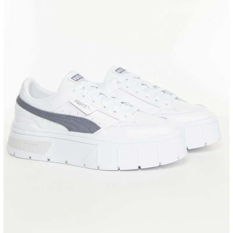 Puma Mayze Stack Wns damessneakers, wit synthetisch. Authentieke Puma-schoen - streetwear/sportswear design van Puma - Puma voor modebewuste vrouwen, perfect voor dagelijks gebruik - deze witte Puma-sneakers passen perfect bij de rest van je garderobe - comfortabel synthetisch materiaal - klassieke veters - Mayze Stack Wns - synthetisch.
