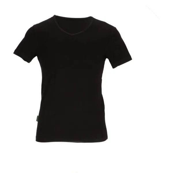 Ecologisch verantwoord bamboe t-shirt van duurzaam viscose. Dit shirt is voorzien van een V-hals, korte mouwen en een normale pasvorm. Door het gebruik van bamboe materialen ben je verzekerd van ultrazacht materiaal. Het valt heerlijk zacht en bied daarnaast perfecte bescherming in de zon. Bamboe heeft als voordeel dat het verkoelt in de zomer, en verwarmt in de winter! Door de duurzame materialen behoud het shirt langdurig zijn zachtheid, zelfs na meerdere wasbeurten! Misschien nog wel het belangrijkste als je kiest voor bamboekleding: het materiaal is milieuvriendelijk. Tijdens de productie van bamboe is de belasting op het milieu tot wel 80 procent minder dan bij katoen. Geschikt voor ieder moment: Door de hoge vochtopname van bamboe kan je dit shirt casual dragen, maar is het ook perfect geschikt onder bijvoorbeeld een overhemd. Daarnaast voorkomt het bamboe shirt nare geurtjes, en is het ontzettend geschikt voor mensen met een gevoelige huid of allergie. Bamboe is van nature een hypoallergeen antibacterieel materiaal. Voordelen Bamboe: Ultra zacht: Soepele stof dat ultrazacht aanvoelt, ook na meerdere wasbeurten! Thermo: Koelt af in de zomer en verwarmt in de winter. Geschikt voor de gevoelige huid: Bamboe is een hypoallergene stof, ideaal voor mensen met allergieën of een gevoelige huid. Geen last van geurtjes: Door het gebruik van antibacteriële stoffen neemt dit bamboeshirt geen nare geurtjes op. Ideaal voor werken in de zon: Bamboe filtert van nature UV stralen.
