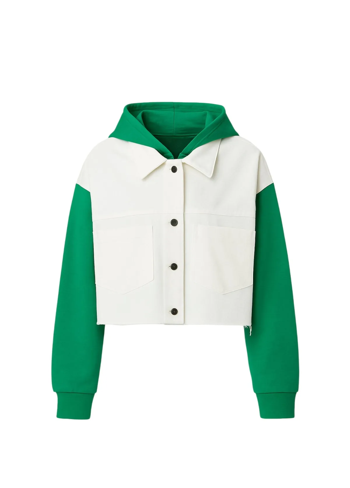 Design: Knop placket, Met capuchon, Opgezette zakken; Type sluiting: Knoopsluiting; Voering: Niet gevoerd; Materiaal: Denim; Motief: Color-Blocking; Extra's: Franjes; Pasvorm: Normale pasvorm
