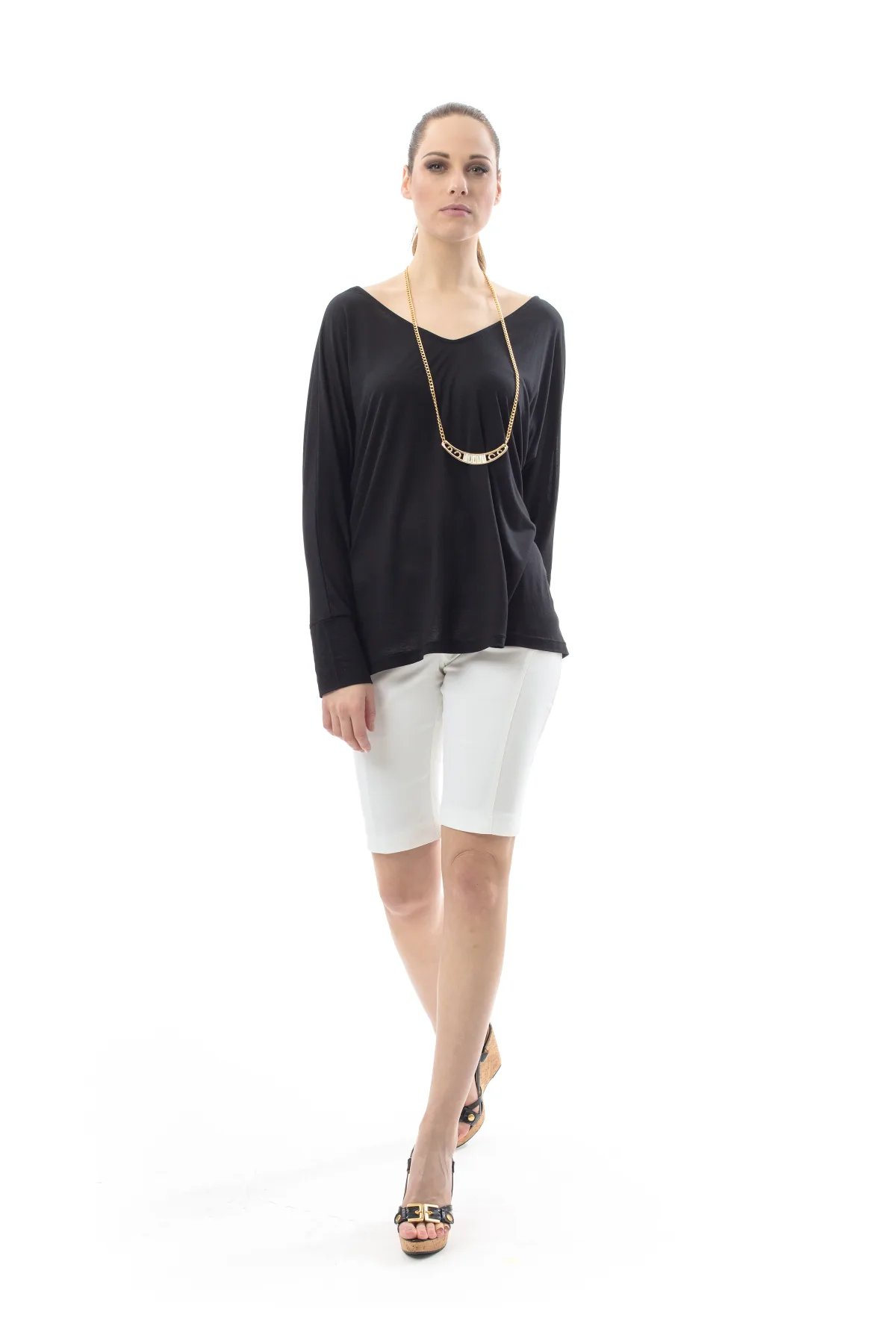 Deze batwing top is heerlijk luchtig en geeft je look dit seizoen een geraffineerde look. Uitgevoerd met een sensueel doorschijnend paneel aan de achterkant en gesneden voor een los figuur flatterend silhouet, zal deze top uw go-to stuk zijn op zwoele avondjes uit. Het getoonde model is 178 cm en draagt maat 36/S. De ketting is een stylingsuggestie en is niet inbegrepen. Top CONQUISTA in effen stof, V-hals voor en achter, lange vleermuismouwen, transparante stof achter en een los silhouet.
