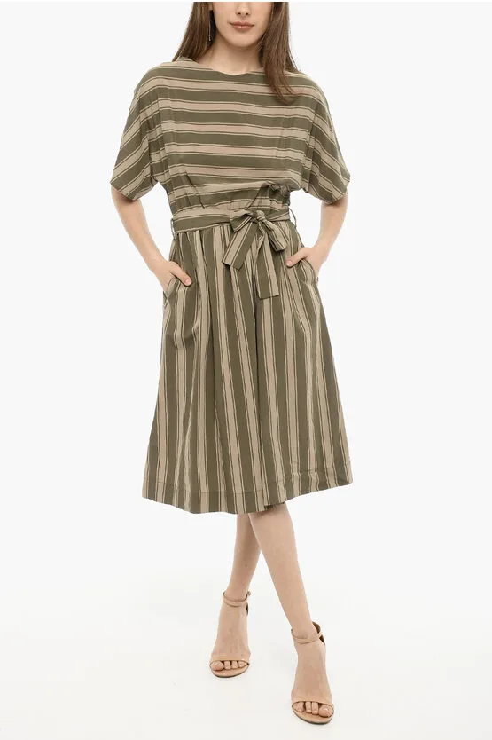 Bayadere gestreepte SCULLY maxi-jurk met riem in beige, verde