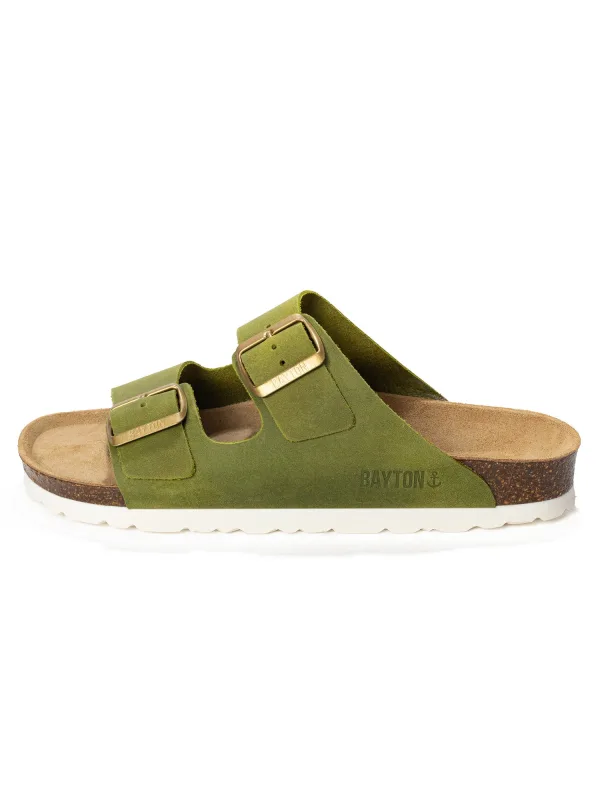 Design: Zool van kurk; Type sluiting: Slip; Materiaal: Leer; Motief: Effen; Materiaal: Suède; Schoenneus: Open toe; Extra's: Label preegdruk; Hakhoogte: Platte hak (0-3 cm)